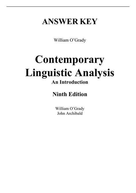 Read Online ANSWER KEY FOR CONTEMPORARY LINGUISTIC ANALYSIS Nook BookBoon
